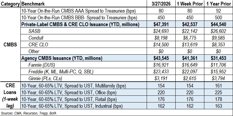 The CMBS and CRE CLO markets, which entered 2026 with significant momentum, have transitioned into a period of uncertainty. The escalation of conflict in the Middle East has recalibrated investor expectations and introduced a fresh layer of volatility into what was previously a normalizing market.