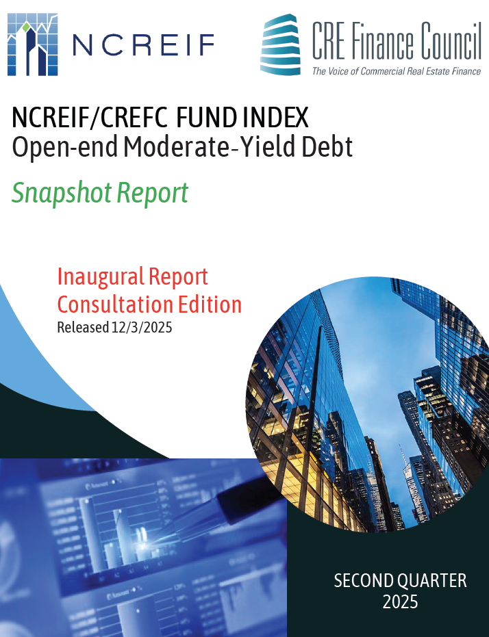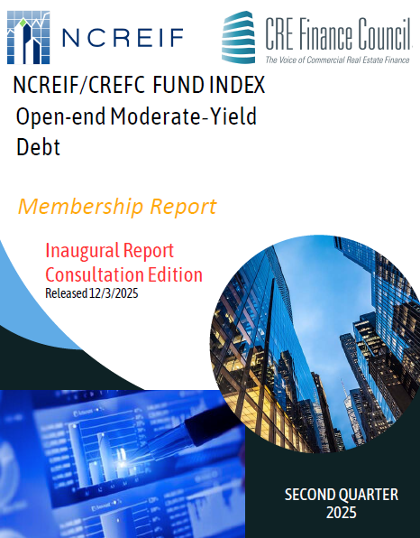 NEW YORK, December 5, 2025 – The CRE Finance Council (CREFC) and the National Council of Real Estate Investment Fiduciaries (NCREIF) announce the launch of the NCREIF/CREFC Fund Index Open-End Moderate-Yield Debt, the first-ever institutional fund-level benchmark for private real estate debt funds. As of June 30, 2025, the Index comprises 12 open-end debt funds representing more than $30 billion in assets and over 500 underlying loans with posted returns since the fourth-quarter 2017, providing a robust, representative measure of performance for the sector.