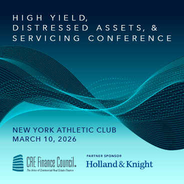 The CRE Finance Council's High Yield, Distressed Assets, & Servicing Conference will be held on March 10, 2026, at the New York Athletic Club.