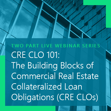 This two-part webinar series provides a deep dive into Commercial Real Estate Collateralized Loan Obligations (CRE CLOs), covering their evolution, structure, and role within capital markets. Designed for professionals looking to enhance their understanding of CRE securitizations, this series explores key characteristics, participants, and investment considerations critical to CRE CLO transactions.