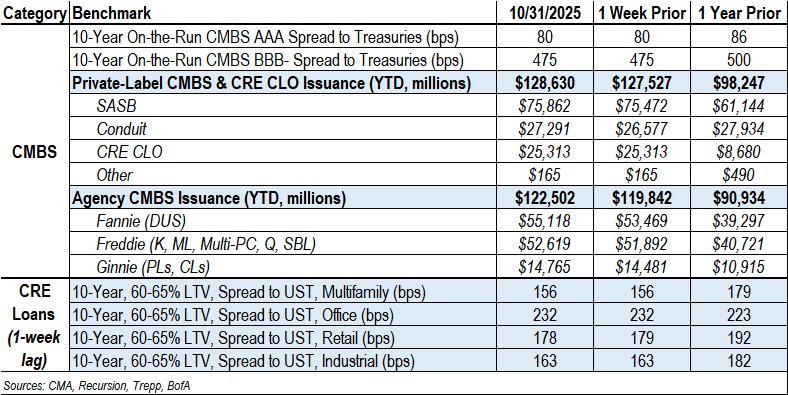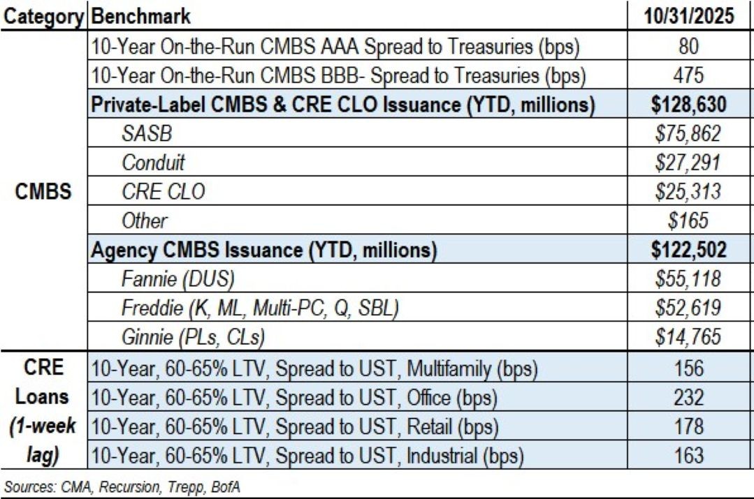 By the numbers: Year-to-date private-label CMBS and CRE CLO issuance totaled $128.6 billion, representing a 31% increase from the $98.2 billion recorded for the same period in 2024.