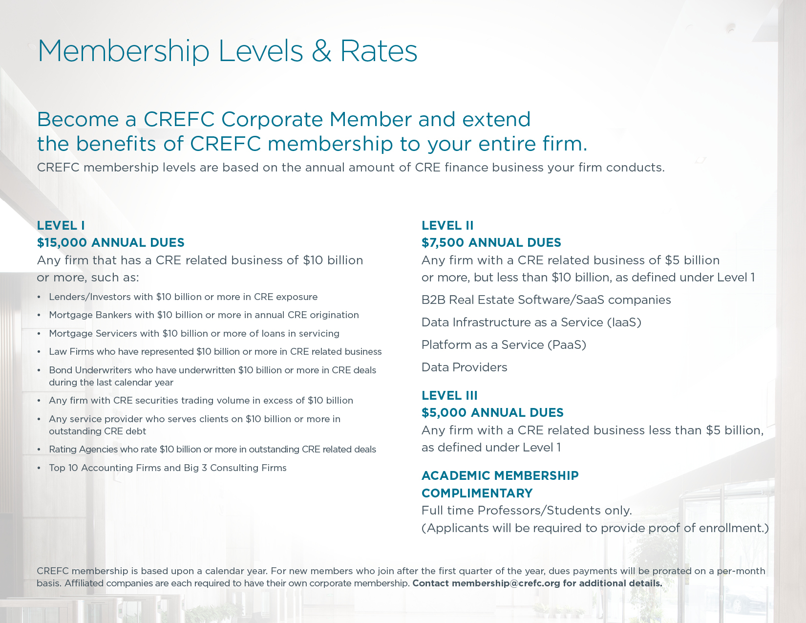 Please contact Caitlin Adams for more information regarding CREFC membership.
