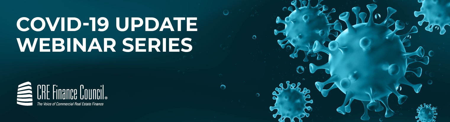 Join CREFC for our COVID-19 Update Webinar Series. Our team and member guest speakers will walk through timely updates on federal COVID-19 policy responses, programs and plans, as well as the impact and issues they’re seeing in the market.